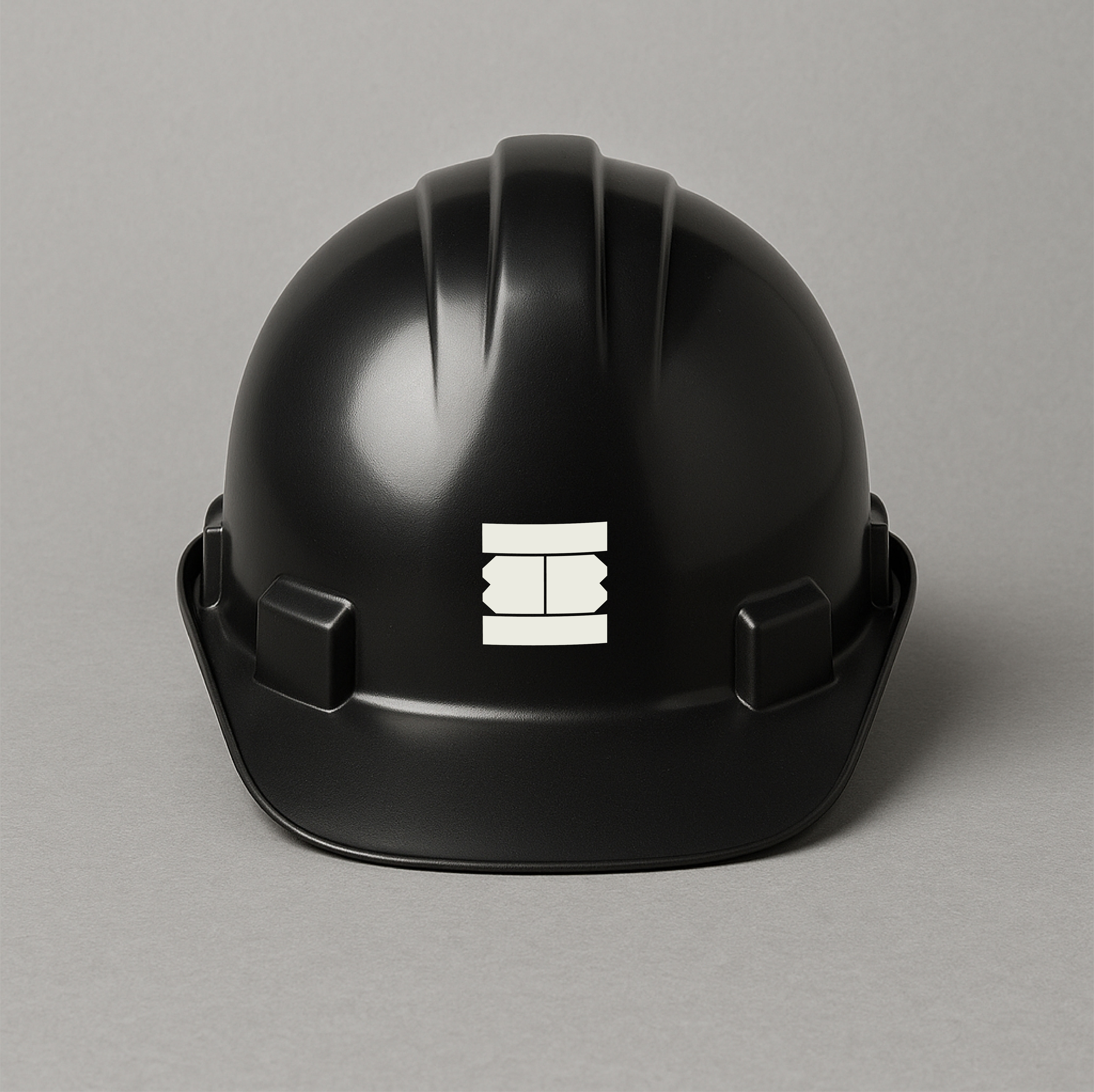El logotipo convierte la forma de un bloque estructural en una B geométrica y monolítica que representa estabilidad y construcción desde la base. La paleta en negro, gris y crema aporta seriedad y una presencia elegante que funciona tanto en espacios industriales como corporativos.