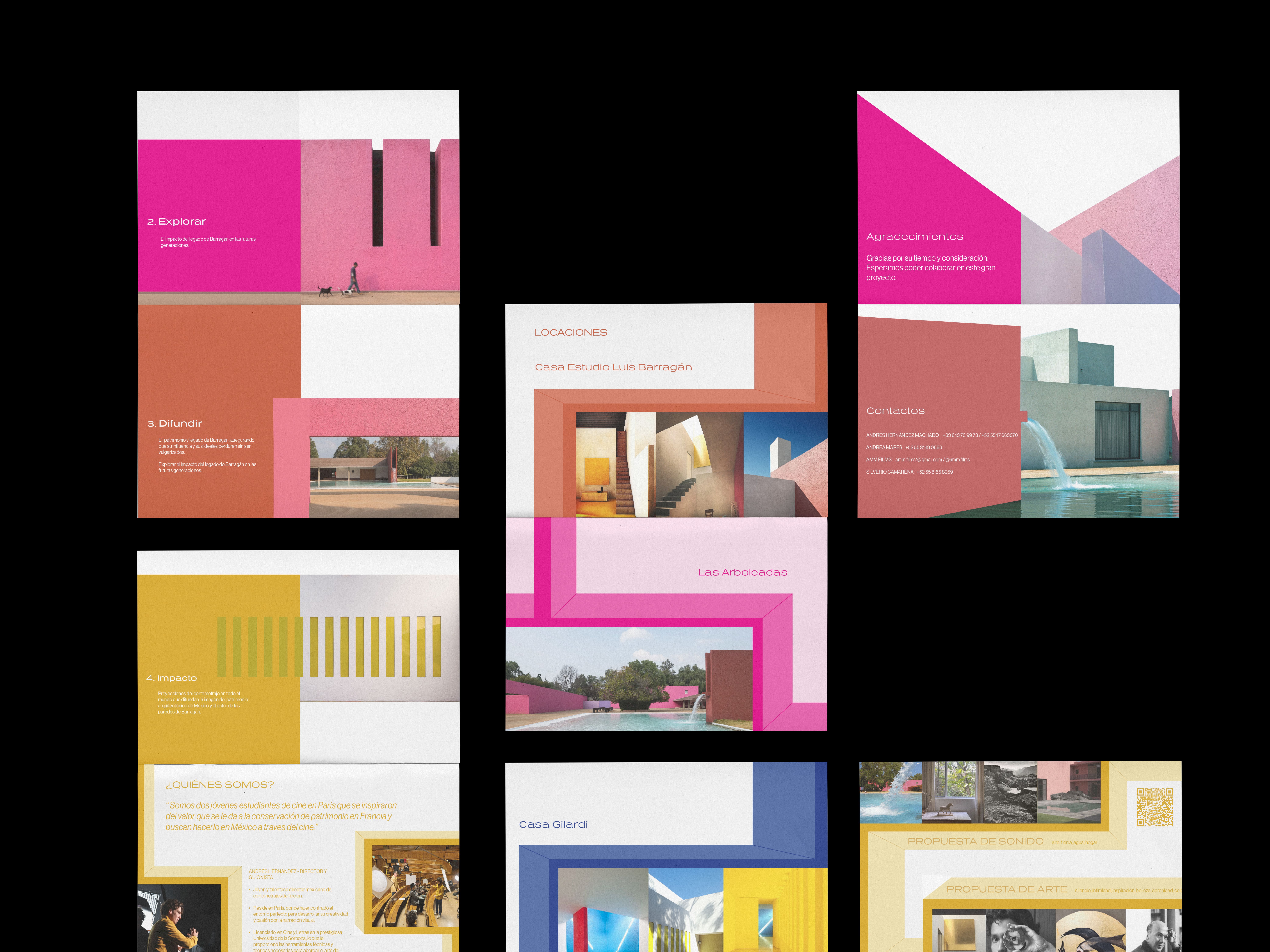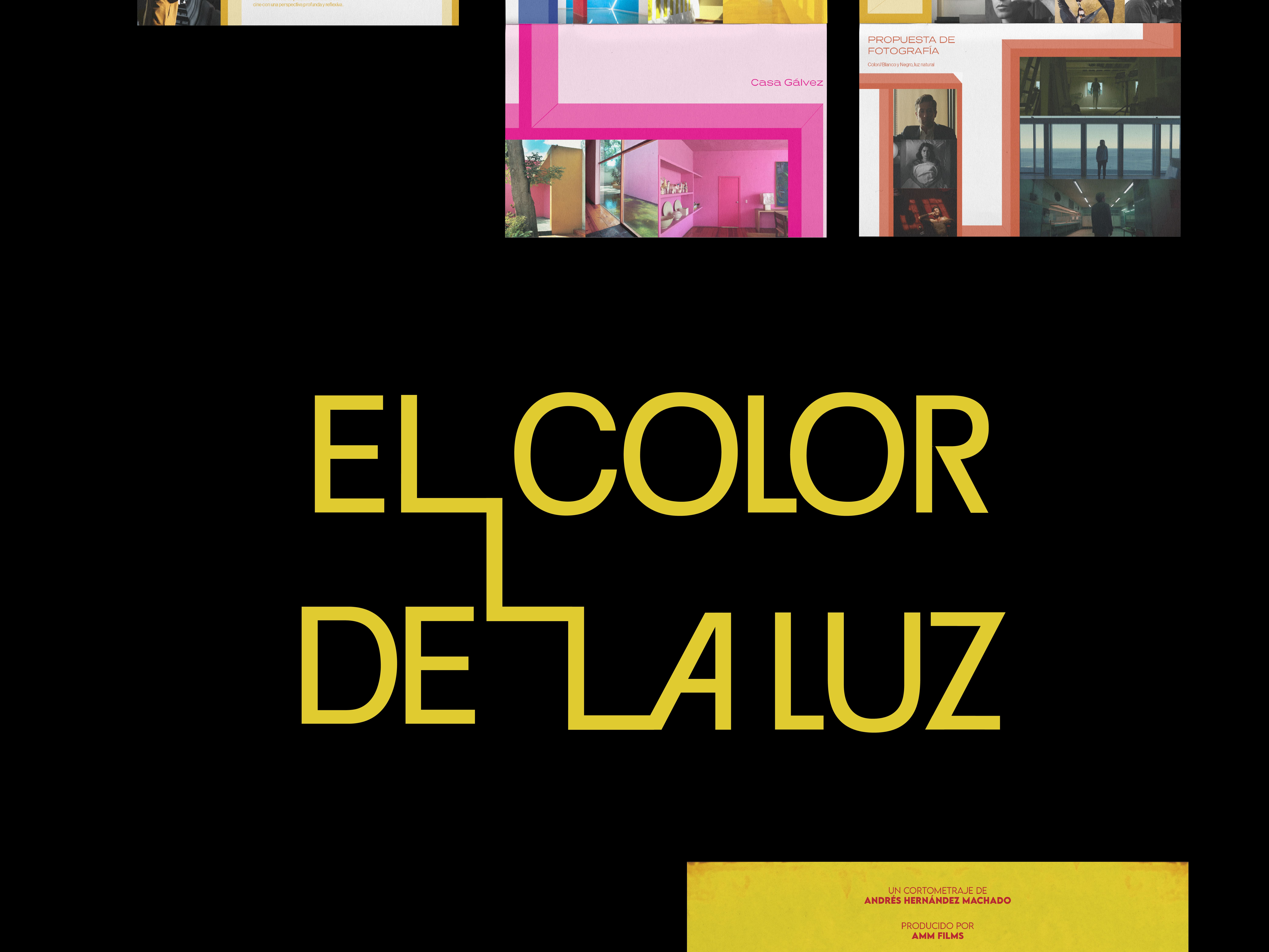 El branding de El color de la luz se basa en una identidad visual que toma la atmósfera del cortometraje y la influencia de Barragán como punto de partida. La paleta, las formas y el uso de la luz construyen un sistema que traduce esa mirada y refleja la temática del cortometraje, un homenaje al trabajo del arquitecto Luis barragán.
